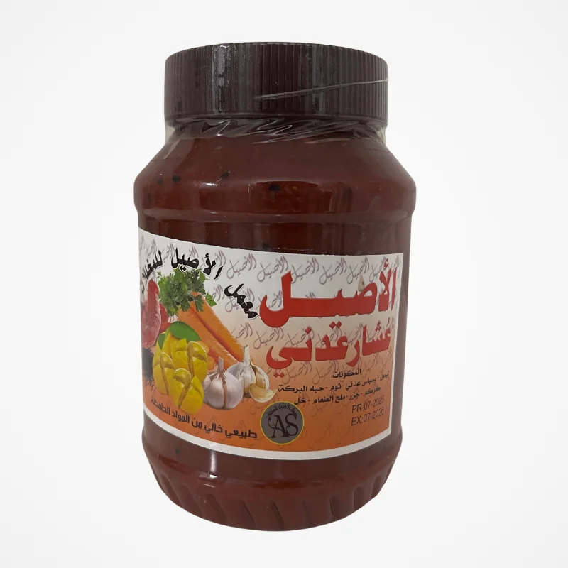Adeni Lime Oshar is a traditional Yemeni condiment made with lime, spices, and herbs, offering a bold, tangy, and savory flavor. It is commonly enjoyed as a side accompaniment with rice dishes, grilled foods, and traditional meals, adding a distinctive Adeni taste to everyday cooking.